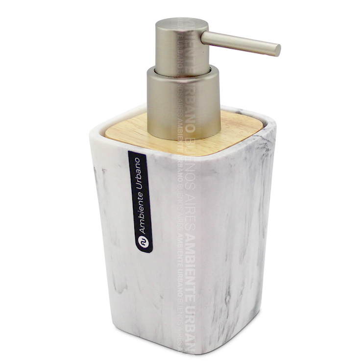 Dispenser Cuadrado Simil Marmol Carrara Blanco y Madera