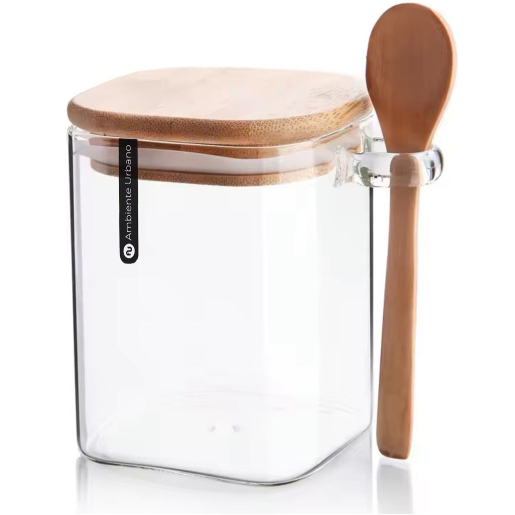 Frasco De Vidrio Cierre Hermetico Tapa Y Cucharita Bambu 1000ml