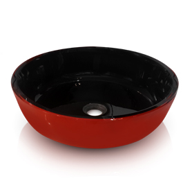 Bacha Apoyo Vidrio Templado AU5148 Redonda Rojo y Negro Au5148 42 x 14 cm OULET (DETALLES)